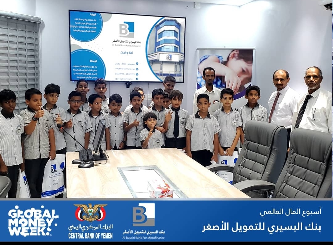 وكان في استقبالهم فريق من بنك البسيري وعلى رأسهم الأستاذ: أحمد سعيد باصالح مدير عمليات التمويل بالبنك ، حيث قام الأستاذ باصالح بالقاء كلمة تحدث فيها عن أسبوع المال العالمي الذي يحمل شعار (خطط لأموالك ؛وازرع مستقبلك) وقام بالشرح للطلاب عن أهمية الادخار وضرورته نظرا للأزمات المتتالية والحالات الطارئة المتكررة التي يمر بها المواطن ، بالإضافة إلى منافعه و وسائله القديمة كالحصالات .