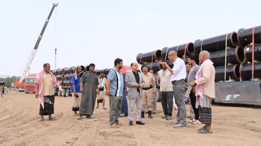 زيارة ميدانية لمعاينة وصول شحنة من مواسير مشروع الخط...