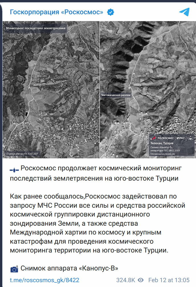 نشرت وكالة الفضاء الروسية "روسكوسموس" صورا للأقمار الصناعية تظهر خطوط صدع ناجمة عن زلزال تركيا المدمر.